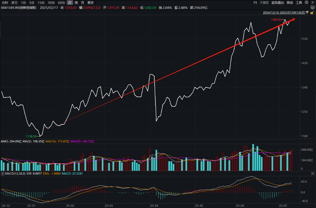 追风交易台最新消息,高盛稍早前发布研报指出,创新药板块这波涨势背后的核心动力,是以“出海授权”为代表的中国创新药全球化浪潮。2025年上半年,中国生物科技板块录得78%的强劲涨幅,显著跑赢恒生医疗指数(+41%)、MSCI中国(+18%)以及美股生技板块XBI(-6%)。